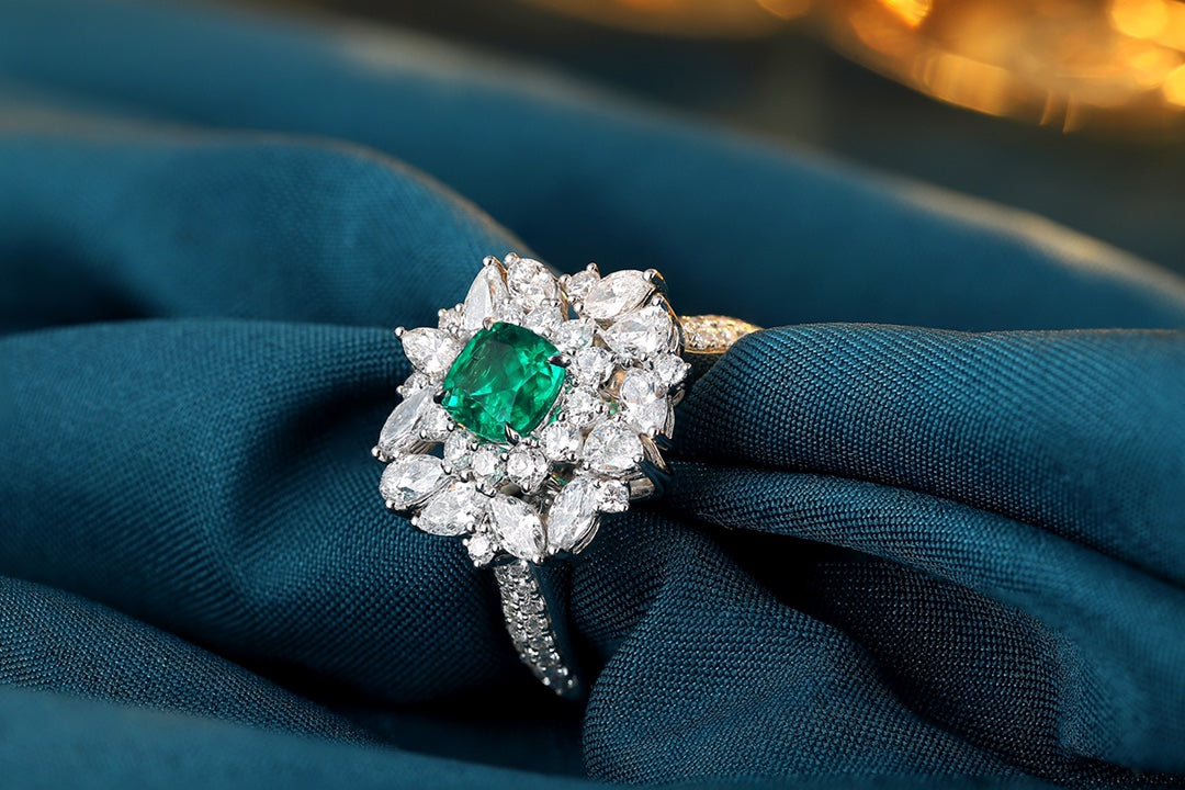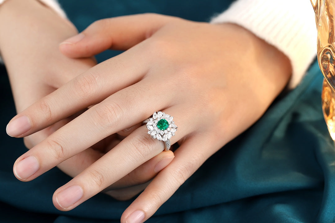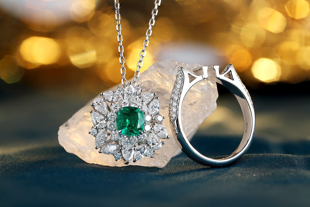 18K Gold Lab - Grown Emerald Ring and Pendant Two-in-One Style A – JCSR1066A