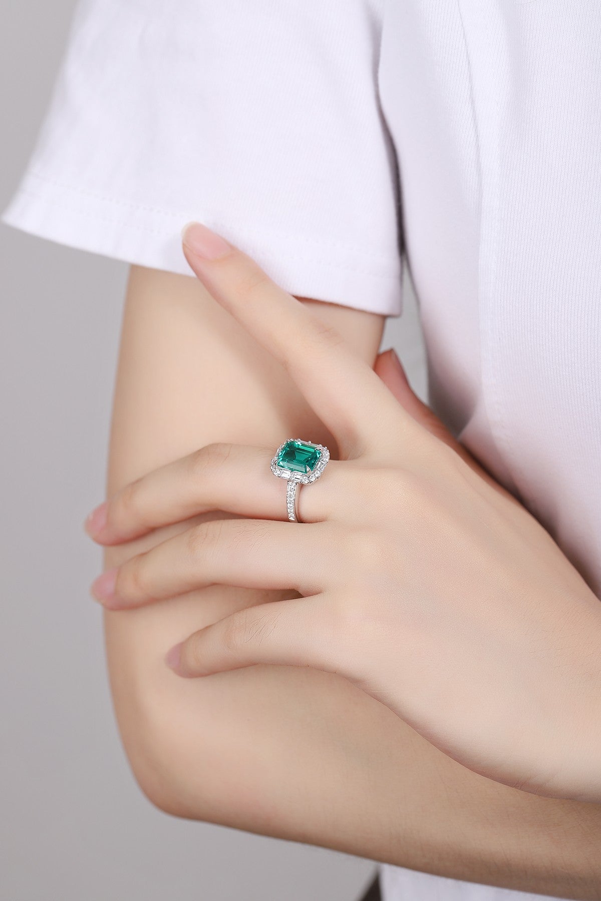 Sterling Silver Lab - Grown Emerald Ring A – JSEGR1217Y