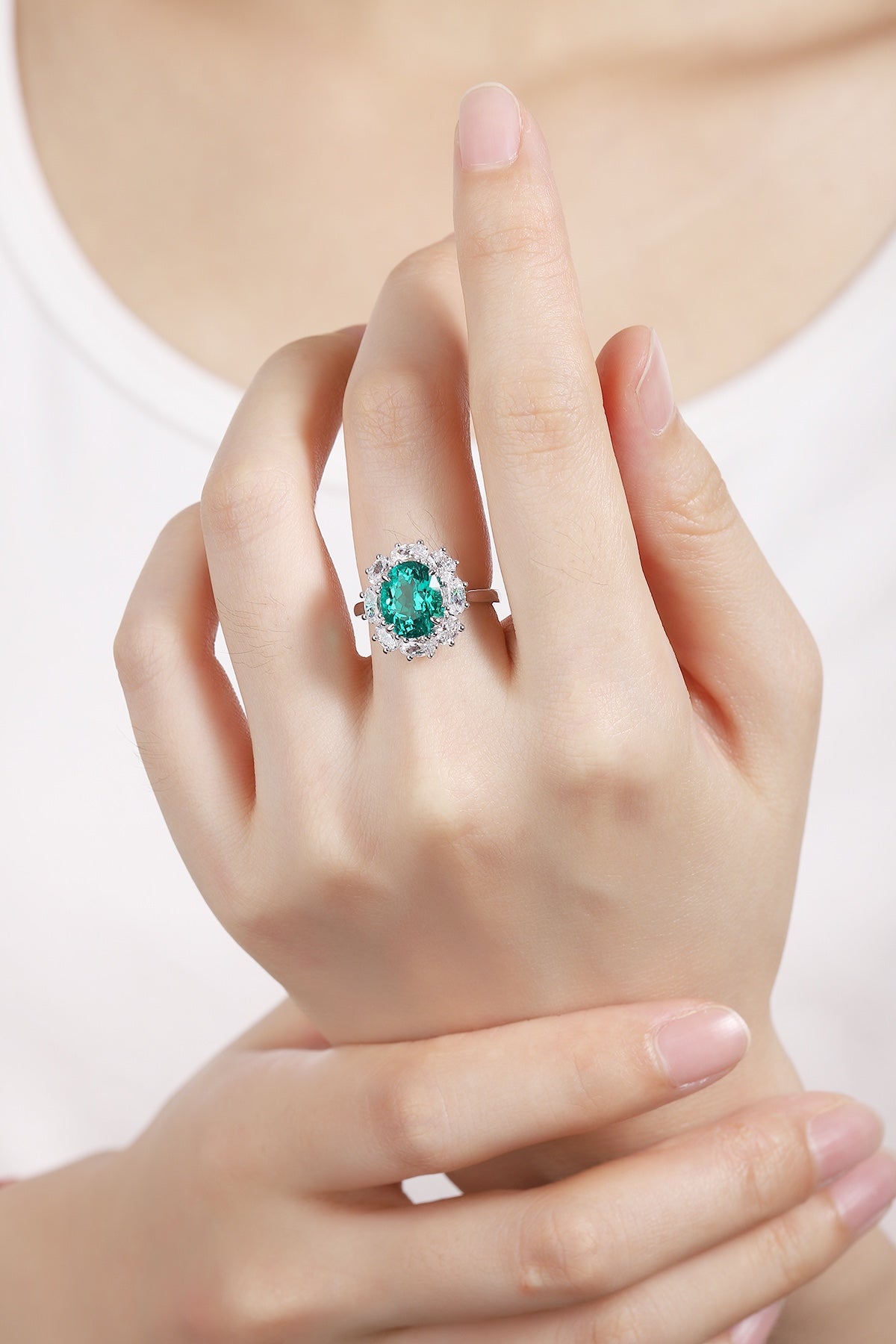 Sterling Silver Lab - Grown Emerald Ring A – JSEGR139Y