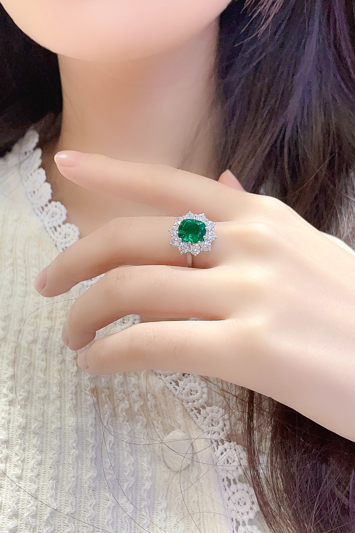 Sterling Silver Lab - Grown Emerald Ring A – JSEGR212Y