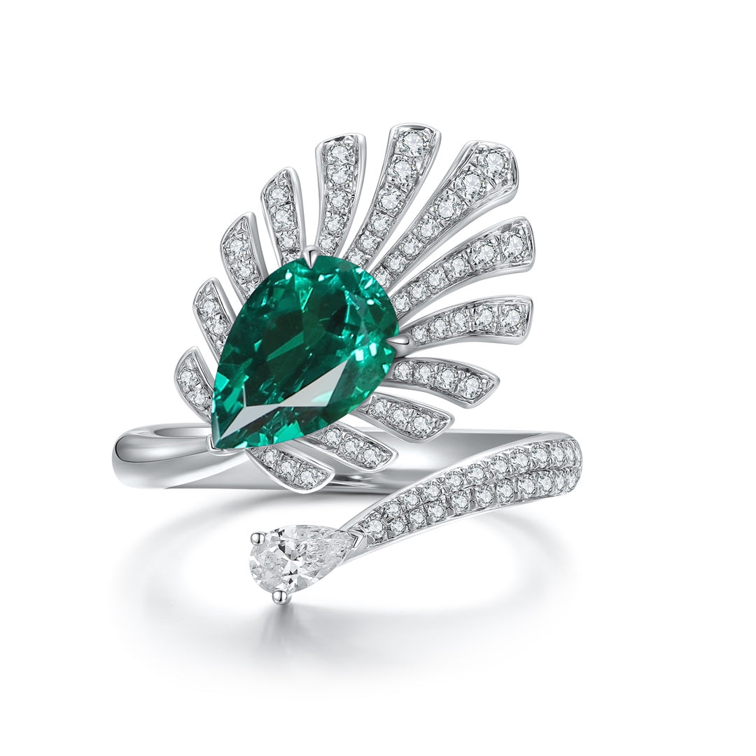 Sterling Silver Lab - Grown Emerald Ring W – JSEGR1237Y